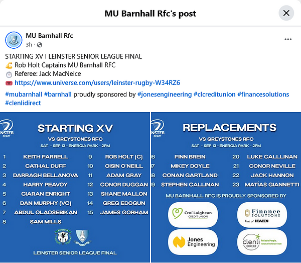 MU Barnhall U15s travelled to Shannon RFC in Limerick ...