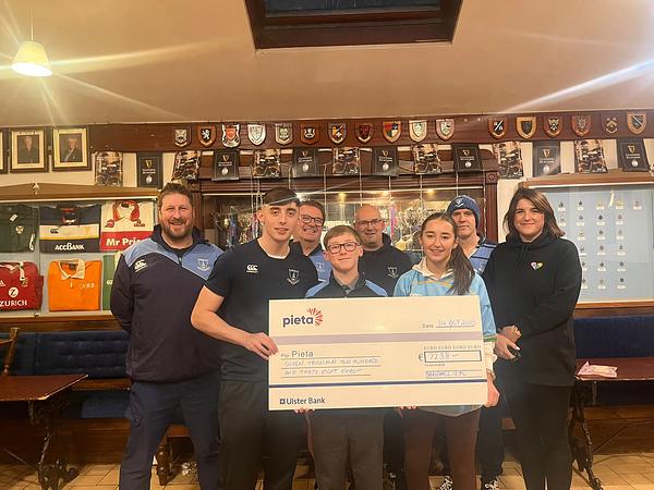 This week we welcomed Sinead Ronan Wells from Pieta to MU Barnhall RFC to present a cheque for €7,238. A magnificent total raised through our recent Butchers Bash event in memory of our friend and team mate Justin O'Connor.