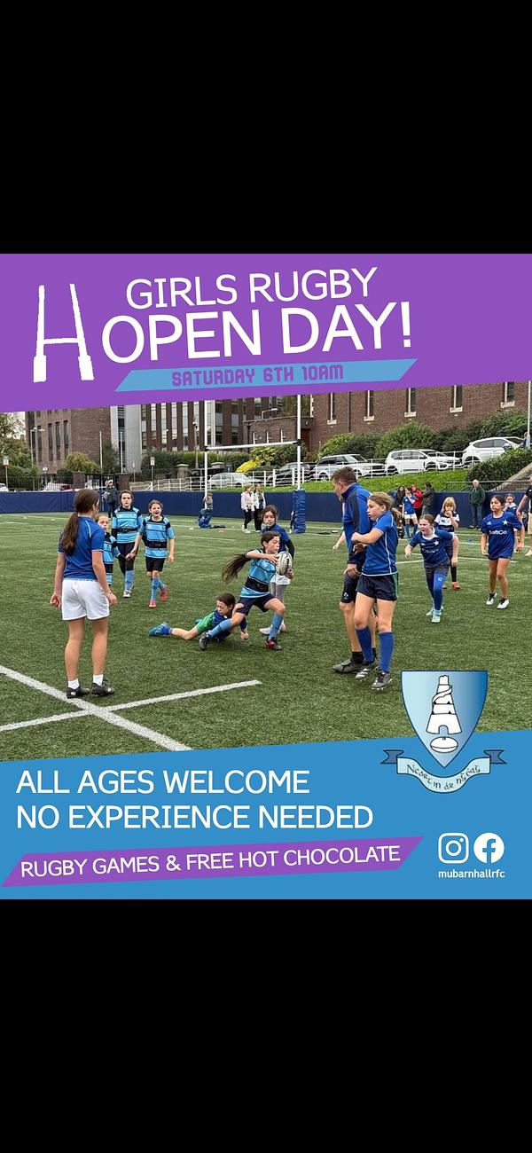 10am Saturday Dec 6th, We are having a Girls Open Day! Come along & play some fun rugby games!